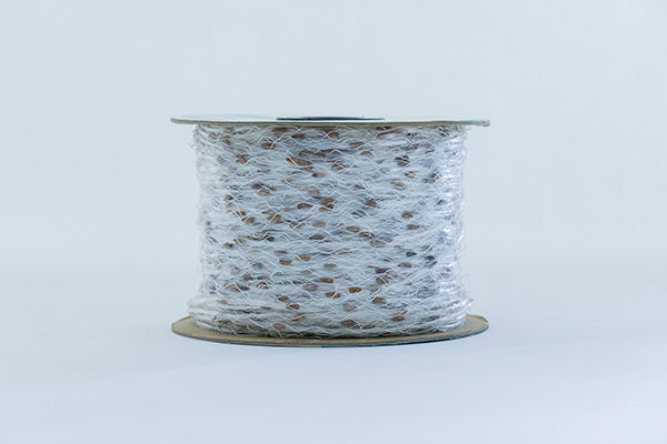 〈クラレポバールフィルム〉の水溶性タイプ〈クラリア®〉を帯状にスリットし、その上に等間隔で野菜等の種子を付着させて、紙縒り状に加工します。等間隔の播種(はしゅ)作業が効率的に行えるようになります。